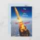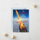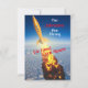Get their attention with this personalised and funny moving notice, complete with the reason, we need more space . Retro rocket ship blasting off with family name on the front, new address notice on the back with light blue background.