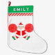 Cute cheerleader Christmas stocking holiday gift featuring cheerleading Mrs. Claus. Edit text to add name.