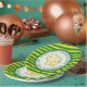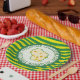 Wisconsin Party Paper Plates with shape of Wisconsin in swiss cheese.
