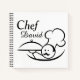 Sleek and modern chef design on personalised recipe notebook for chefs or cooks with a touch of flair.