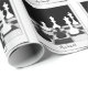 This personalised chess wrapping paper design features classic black and white chess pieces on a chessboard. The scene is on a retro photography picture with a customisable name.
