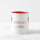 Show everyone how you prefer your coffee with this personalised mug, Customise it to add your own name. This mug will make it perfect for making sure no one ever gets your drink wrong ever again, and knows that you love a cookie with your brew! Chestnut red coloured speech bubbles at each side of the name allow you to add your own special message for the coffee maker in your family or office. Also available for all hot beverage styles in a range of styles and colours.