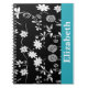 This is trendy and chic beautiful personalised guest notebook design. This notebook feature is black white and teal chevron floral and badge pattern background. Personalise with your name monogram or other text. You can also change the font, adjust the font size and font colour, move the text, add additional text fields, etc.