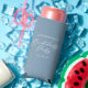 A chic dusty blue bachelorette party seltzer can cooler for a summer coastal weekend by the sea. Personalise these light grey blue decor with elegant minimalist typography to match your tranquil bridal colour scheme.