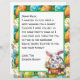 Add your child's name to this customisable letter from the Easter Bunny. Cute vintage Easter bunny in a basket with a cute Easter Eggs background. Back side of this letter is a colouring page for your child.