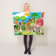 A fun blanket with happy farm animals including a horse, pig, cows, sheep, goat and chickens. A barn, tractor and a cheerful farm scene with a personalised farm sign with the child's name. A great gift for any animal loving child.