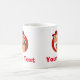 Customisable mug with an illustration of a cute happy chimpanzee with red baseball cap, with custom text template for your name or message, illustration by MaxiHarmony