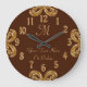 Personalised Chocolate Gold coloured Monogrammed Wall Clocks with Your Monogram and Names or Your Text. Gorgeous golden scrolls and numbers and your text or Delete any or all text. Click "More" to type in two text boxes below "Edit this design template". Wonderful Anniversary Clock, Wedding and Show Gift Ideas. CALL Linda for design changes and for help. I can change any parts of the design to any colour or place on a different product: 239-949-9090