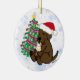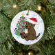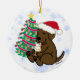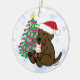 Personalised Chocolate Labrador Ice Cream Ceramic Ornament . Whimsical and cute Labrador Retriever Painting painted by Naomi Ochiai from Japan. A Cute Chocolate Labrador is licking Ice Cream as usual. Beautiful Christmas Tree is beside the pup. Nice Christmas Gifts for Chocolate Lab fans!