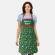 A cute, modern Christmas apron design with retro-inspired illustrations of ornaments, stockings, candy canes, Christmas trees & snowflakes. This can be customised with a person's name, initials or your own message. A fun & unique Christmas gift in traditional Christmas colours