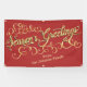 Personalised Christmas greeting banner. Features the words Season's Greetings in a red and gold flourish design. A modern, pretty Xmas design you can personalise with your family's name.