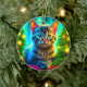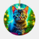 Pretty kitten sitting in front of lit up Christmas trees. Personalised Christmas ornament.