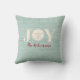 A joyful Christmas beach lumbar throw pillow with the word, JOY on a weathered wood background. The o in the word joy is replaced by a sand dollar. Personalise it with your name. Fun for your Christmas Beach decor. Designed for you by Blackberry Boulevard.