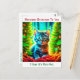 Pretty kitten sitting in front of lit up Christmas trees personalised Merry Christmas and Happy New Year postcard.