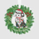 Cute Personalised Cartoon Sheepadoodle Puppy wearing Personalised Santa hat, wrapped in christmas lights. Festive christmas wreath border. Adorable sheepadoodle holiday Acrylic ornament!