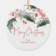 These personalised Christmas ornaments features your greeting with a top boarder of holly and red berries on both sides. Use the template fields to add your custom text to this round ornament. To see more holiday designs and to create your own, visit www.zazzle.com/lovelypaperboutique