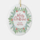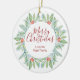 These personalised Christmas ornaments features your greeting encircled with watercolor greenery and red berries on both sides. Use the template fields to add your custom text to this round ornament. To see more holiday designs and to create your own, visit www.zazzle.com/dotellabelle