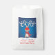 Fun reindeer in the snow add your own text or name Christmas party thank you goodie bag. Perfect for your Christmas food favours. Favour bag reads: Thanks for coming to the Fraser's Annual Christmas party or personalise this gift bag with the words and name of your choice. Design and art by Sarah Trett.
