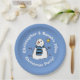 Paper plates for a Christmas Party decorated with a fun snowman illustration.