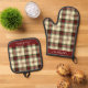 Personalised Christmas Red Green plaid Pattern Oven Mitt & Pot Holder Set