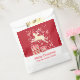 Fun reindeer in the snow add your own text or name Christmas party thank you gift bag in shades of red and white. Perfect for your Christmas food favours. Bold fun design featuring a reindeer jumping over boxed gifts in festive colours. Personalise with your our greeting and family name, currently reads Happy Christmas from the Dickens family.