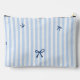 Personalised Classic Blue Pastel Striped Bow Accessory Pouch
