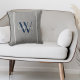 This personalised design is both simple and classic. A grey "linen-look" background with your own last name centred in the middle is then flanked by vertical thin white stripes on each side. This design is timeless and can easily be altered to fit your specific colour scheme. It also makes an excellent gift for a wedding, anniversary, housewarming, or just because!