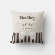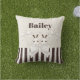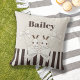 The product design features bunny twins and off-white ribbons. This adorable animal cartoon with stripes makes a cute, classic modern, and unique outdoor throw pillow with personalised text for kids.