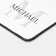 features personalised name in grey and monogram in light grey as background, in classic serif font style,