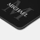 features personalised name in white and monogram in light grey as background, in classic serif font style,