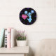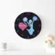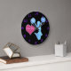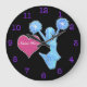 Personalised Clocks for Cheerleading Room Decor in Your Background and Text COLORS with a super cool Blue Jumping Cheerleader, a Pink Heart with YOUR NAME typed into the Text Box. CALL Designer Linda to CHANGE any of the cheer clock COLORS. 239-949-9090