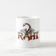 Close-up of a white ceramic mug featuring a stylised scorpion design.