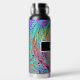 Add your name to this Digital pour painting marble colourful blue, teal, purple, red, yellow fluid art water or coffee bottle.