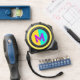 A bright and bold measuring tape to customise with your initial as a monogram. This tape measure features retro cool vibes, with its eye-catching yellow, blue and magenta design. Whether you're a creative hobbyist, student or carpentry business owner, this measuring tape adds a vibrant splash of colour to your day.