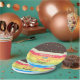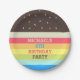 Custom birthday party paper plates with vector design featuring a minimalist colourful chocolate cake with sprinkles. Personalise these fun paper plates with your own custom text and name!