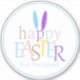 The design features fun and colourful typography of the Easter wish "Happy Easter" along with bunny ears and personalisation field.