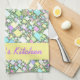 A unique kitchen towel design sports a colourful abstract pastel mini boxes design. A pastel yellow (plucked from the design) bar along the bottom allows the text to stand out from the design. Fill in the template field with your words, remove all text or click the customise to select a font style, size and colour you prefer. .