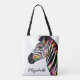 Shades of purple and pink come together in this beautifully vibrant pop art portrait of a colourfully striped zebra that really stands out on a white background. Easily change the name to personalise this item for yourself or someone else. In addition, the background colour and font can both be customised to your liking.