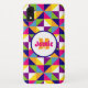 This cell phone case has a colourful pattern of triangles and squares that looks like a quilt in bright yellow, navy, green, pink, blue, purple, orange, and white. Customise the white and navy blue circle with your name, initials, monogram, or other wording. Make the circle and name as big or little as you like, or remove it completely.