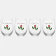 The design features a geometric abstract artwork of red roses and holly in an elegant design along with a customisable typography field per stemless glass that currently read "'Tis the Holiday Season" "Merry Christmas" "Holiday Cheer" and "Happy Holidays!" for wish or other personalisation. The artwork is presented in Christmas holiday red, green, and golden brown colours.