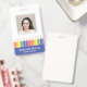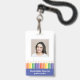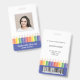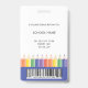 Add a cheerful touch to your school’s professional image with this modern and customisable teacher ID badge. Featuring a fun rainbow pencil illustration with blue, and a clear photo template, it’s both practical and playful. Personalise the front with your name and teacher's grade, and easily add school details on the back. Perfect for preschool, kindergarten, and elementary school teachers who want to combine professionalism with a touch of creativity. This template comes with a barcode on the back. Upload your code and photo in the personalise this design section.
