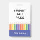 Add a cheerful and practical touch to your classroom with this Personalised Colourful Student Hall Pass Badge. Featuring a fun rainbow pencil illustration with bright colours and blue accents, this design is playful while still looking clean and organised for everyday school use.