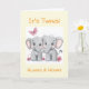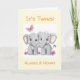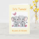 Celebrate the arrival of newborn twins with this neutral and customisable greeting card! The front features two sweet little elephants and the message "It's Twins", with space to personalise the card with the twins' names - it's also possible to leave this part blank. Suitable for all genders.