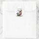 This personalised construction name sticker has a cement truck, a dump truck and a star. They all set over a line with red, green and blue with plaid in same shades at the bottom.