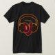 DJ word, listening to some cool music through headphones. A fashion idea to promote the deejay.