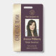 Easily personalise this professional luxury style gold and burgundy employee photo ID badge with your custom details.