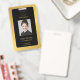 Personalise Corporate Employee Modern Golden ID Badge Custom Employee Photo, Bar Code, Logo, Name, personalise these vertical badges with an employee photo and name, custom text for employee ID number, role or title, location, or other key data. Add your logo under .