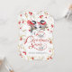 For newlyweds or couples’ Christmas party invitation featuring adorable illustrated pair cuddling winter chickadees adorned with their little scarves— surrounded by bright red winterberries. Gold, reds, greys, black on white. Choose your paper style and type along with personalised greeting and information. Merry Christmas!