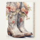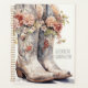 Stay organised in rustic elegance with this personalised planner, featuring blue-grey cowgirl boots overflowing with muted wildflowers. Set against a natural-toned background, the design blends soft, subtle colours with a timeless western aesthetic. Customise it with a first and last name in elegant script, making it uniquely yours. The gold spiral binding adds a touch of sophistication, combining style and functionality for daily planning. Perfect for cowgirls, farmhouse lovers, and western enthusiasts, this planner is ideal for keeping track of appointments, goals, and creative ideas with a personalised country charm.