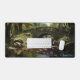 Bring the beauty of a green forest view into your workspace with this exquisite desk mat. Personalise it with a name printed on the lower right corner. This mat features a wide view of a lush green forest, a small creek running silently under an old stone arch bridge, worn with the timeless comings and goings of many people with a high-quality print from a high definition graphic. It provides a smooth and comfortable surface for your work for your laptop, keyboard and mouse. It can also transform your workbench with a stylish and elegant touch. Perfectly suited for all creators, artists, writers and anyone inspired.